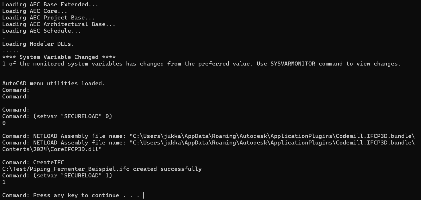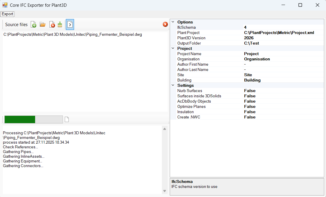 Core IFC Exporter is a complementary application that can be used alternative to the IFC plugin. It is using AutoCAD command line version (accoreconsole.exe) to create IFC files without need to open AutoCAD Plant3D user interface.