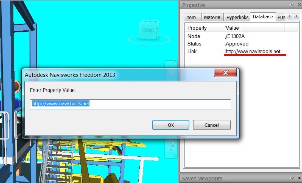Navistools Capture is a free application that allows a Navisworks Freedom user to open a hyperlinked file or URL from a Navisworks property field.