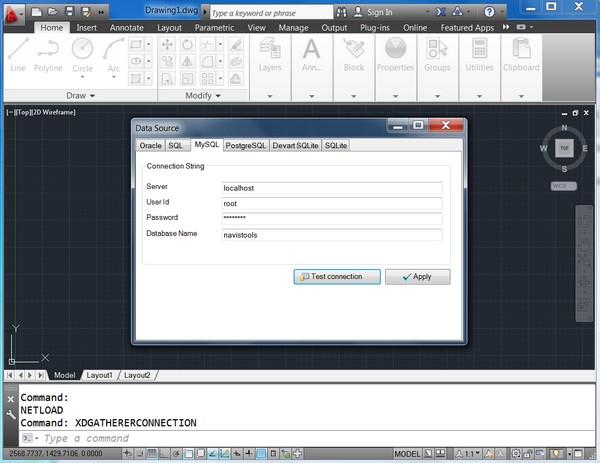 Before AutoCAD can interoperate with XData Gatherer we had to setup a database connection. To define datasource, please launch AutoCAD and load C:\Navistools2014\XDataGatherer2014.dll with Netload command