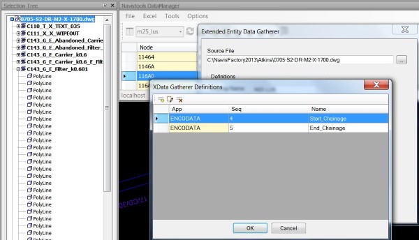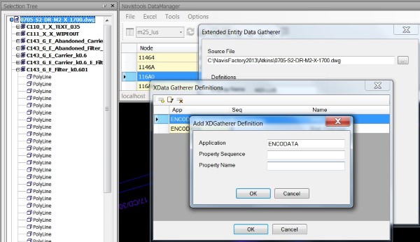 Xdata Gatherer is used to read Extended Entity Data (Xdata) from AutoCAD drawings into the Navistools tables. Using this function requires that the current Navisworks file is an .nwf – so that the source file names and paths are known and verified. It also requires that AutoCAD 2013 or 2014 version is installed.